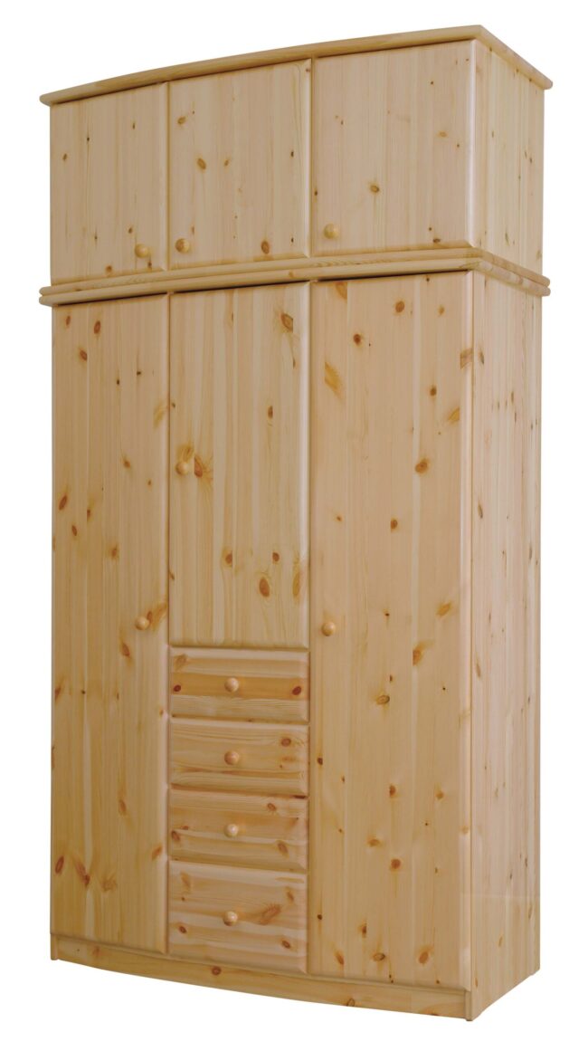 Csanád íves szekrény magasítóval, három ajtós, négy fiókos. Termék mérete: 130x234x62 cm